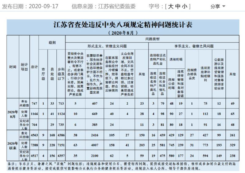 8月江蘇查處違反中央八項規(guī)定精神問題7