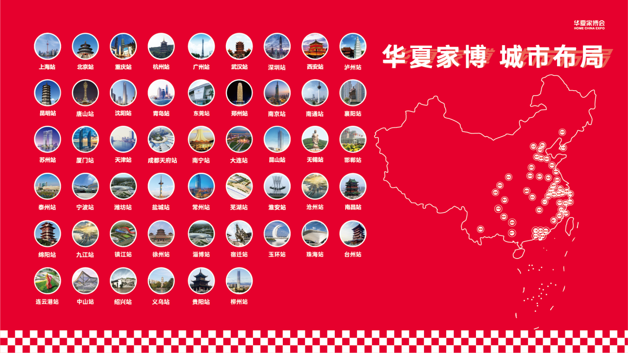 為了更好的將省錢便捷的家裝采購服務,更好的服務到消費者,華墨集團于2019年提出了“百城計劃”的戰(zhàn)略目標——2023年實現(xiàn)華夏家博會覆蓋國內(nèi)100城。經(jīng)過全體華墨人的共同努力,2021第三季度新開城市增加了:淮安、滄州、鎮(zhèn)江、柳州、淄博、瀘州、襄陽、珠海、臺州、邯鄲、宿遷、連云港、玉環(huán)、中山,落地城市增至51城。