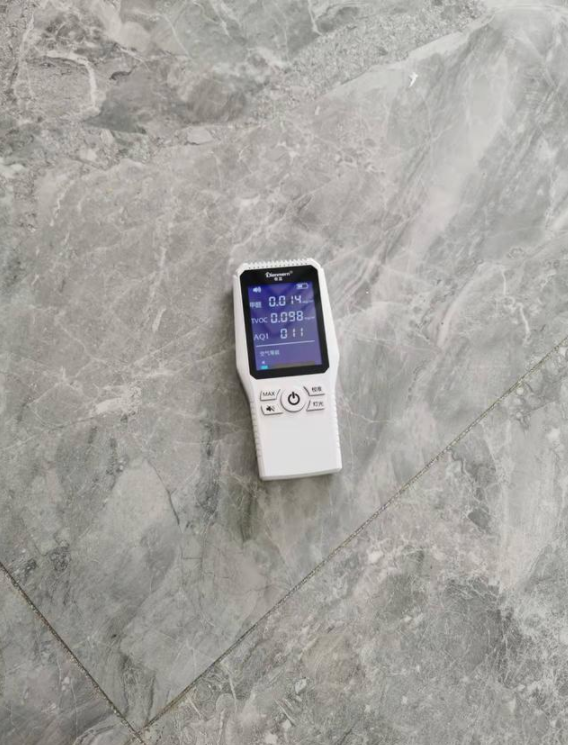 用同樣的方法,黃女士對(duì)客廳的沙發(fā)和瓷磚進(jìn)行甲醛檢測(cè),結(jié)果顯示沙發(fā)的甲醛含量為0.09mg/m³,TVOC(總揮發(fā)性有機(jī)化合物)為0.63mg/m³;瓷磚的甲醛含量為0.014mg/m³,TVOC(總揮發(fā)性有機(jī)化合物)為0.098mg/m³。沙發(fā)和瓷磚的AQI(空氣質(zhì)量指數(shù))顯示均為“優(yōu)”。
