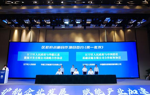 現(xiàn)場(chǎng),江寧區(qū)人民政府與華能江蘇能源開(kāi)發(fā)有限公司簽訂戰(zhàn)略合作協(xié)議,與中國(guó)建設(shè)基礎(chǔ)設(shè)施有限公司簽訂合作框架協(xié)議。