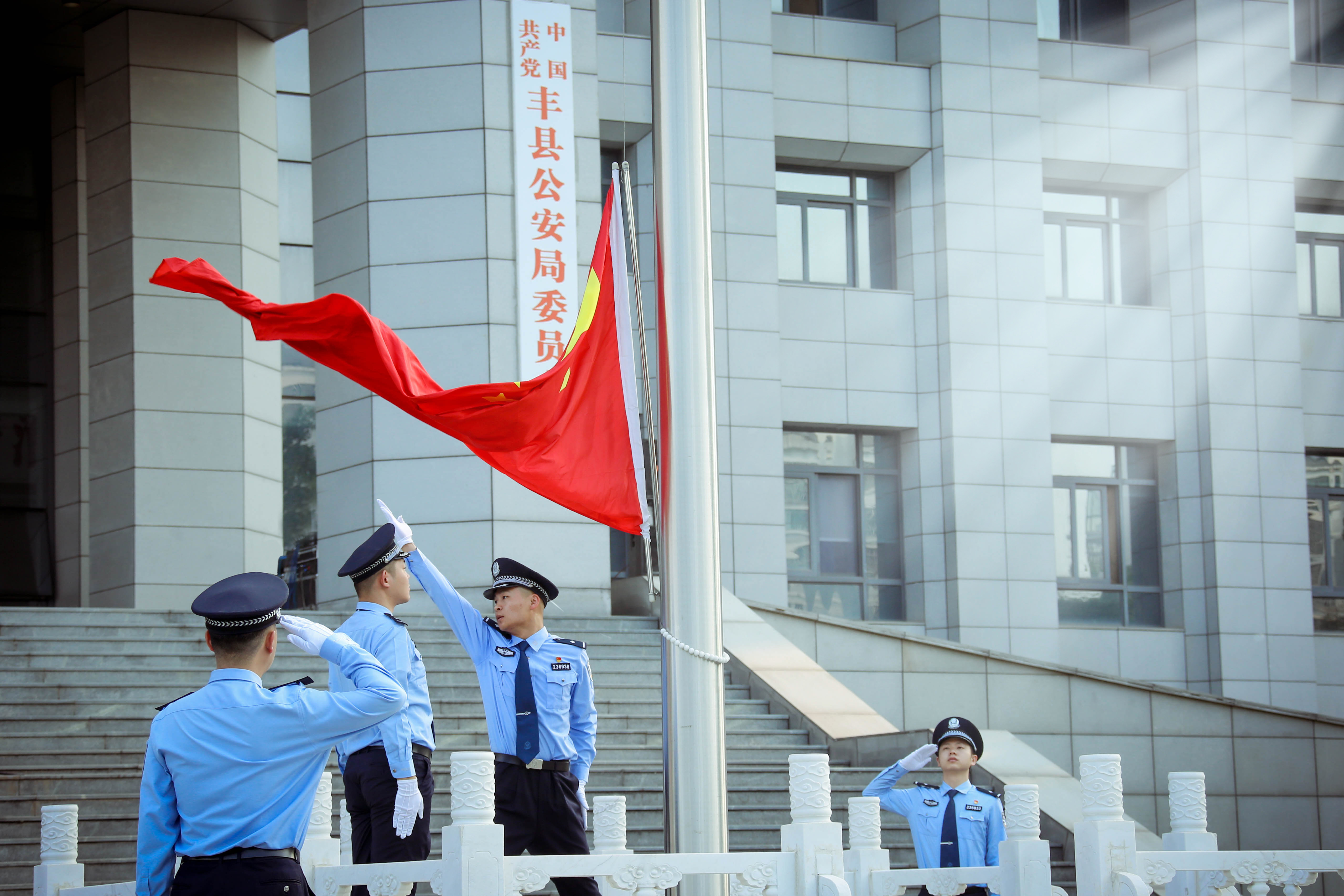 7月1日上午7時(shí)30分,豐縣公安局舉行慶“七一”建黨節(jié)升國旗儀式。全體黨員民警警容嚴(yán)整、整齊列隊(duì),儀仗隊(duì)員們英姿颯爽、昂首闊步,護(hù)衛(wèi)國旗入場。伴隨著雄壯的《義勇軍進(jìn)行曲》,全體黨員民警莊嚴(yán)敬禮,目送鮮艷的五星紅旗冉冉升起,迎風(fēng)飄揚(yáng)。隨后,全體黨員民警重溫了入黨誓詞,表達(dá)了對(duì)黨的無限忠誠,匯聚起全警矢志不渝跟黨走的堅(jiān)定決心。(許影)