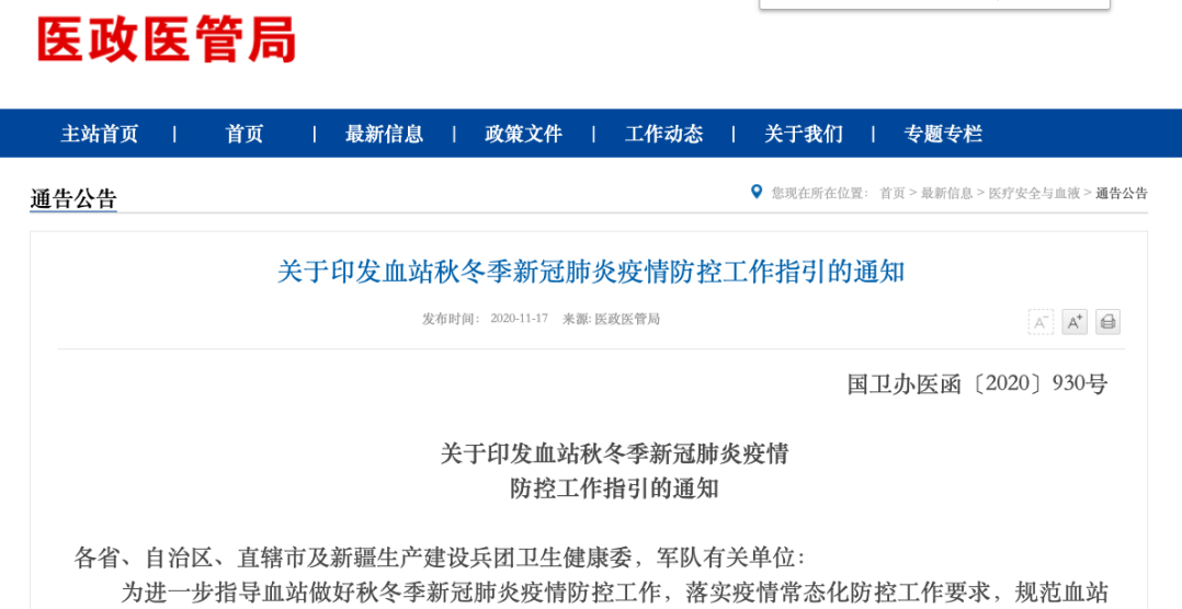 11月17日,國家衛(wèi)健委印發(fā)《血站秋冬季新冠肺炎疫情防控工作指引》(以下簡稱《指引》),進(jìn)一步指導(dǎo)血站做好秋冬季新冠肺炎疫情防控工作,保障血液安全供應(yīng)。