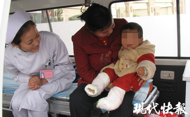 “抱回家我才解開包被,一看是個男嬰,但是雙手雙腳都有殘疾。”彭女士說,孩子的雙手中指向內(nèi)彎曲,雙腳從腳踝部位嚴(yán)重內(nèi)翻。為了幫孩子找到親生父母,彭女士一家人到鎮(zhèn)上大大小小的醫(yī)院去問,看看哪個村莊有丟失小孩的,可是很多天過去了,沒有找到任何線索。