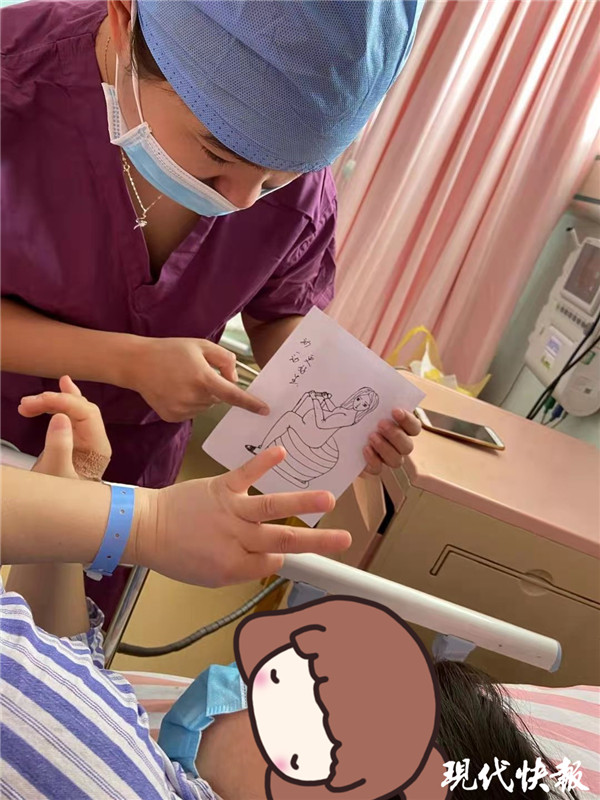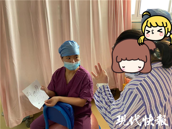 “通過(guò)了解,這個(gè)孕婦不僅聾啞,同時(shí)也沒(méi)接受過(guò)什么文化教育,如果以文字形式進(jìn)行溝通,她可能不能很好的理解,所以我們就想著以什么樣的形式更直觀的讓她理解我們想要表達(dá)的意思,我們就想到了以助產(chǎn)士的親身示教,還有以繪畫(huà)的形式來(lái)表達(dá)。”淮安市婦幼保健院產(chǎn)房助產(chǎn)士秦立敏說(shuō)。