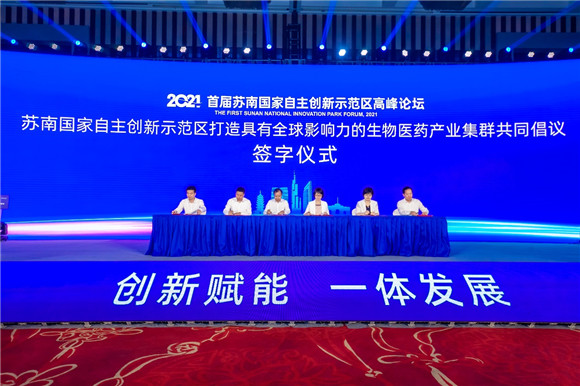 江蘇是生物醫(yī)藥產(chǎn)業(yè)大省,蘇南地區(qū)更是江蘇的核心板塊。首屆論壇作為2021南京創(chuàng)新周的重點(diǎn)活動(dòng),與會(huì)嘉賓圍繞生物醫(yī)藥產(chǎn)業(yè)創(chuàng)新發(fā)展進(jìn)行深入探討?,F(xiàn)場還簽署了“蘇南國家自主創(chuàng)新示范區(qū)打造具有全球影響力的生物醫(yī)藥產(chǎn)業(yè)集群共同倡議”。