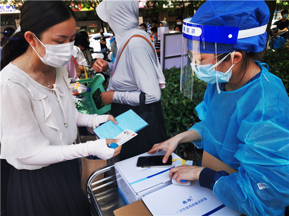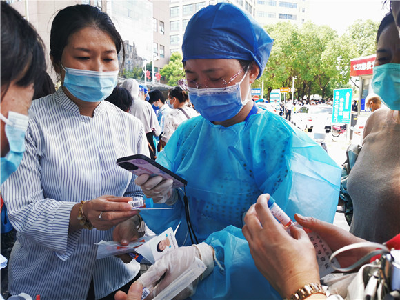 排隊、登記、掃碼填信息、講解采樣流程,并且回答受采者的各種問題。 一整天的時間下來,負責(zé)采樣前咨詢的醫(yī)護人員們整個喉嚨都腫了起來,咽口水都疼。“但是再累我也要堅持,至少我管理有序后,他們的工作可以更加順利、少受點罪。”行政、后勤的工作人員說道說道。“大家都在一條戰(zhàn)線上,有共同的敵人。想打贏這場仗,必須相互照應(yīng)。 ”全體醫(yī)護人員舍小家、為大家,為江寧人民筑起一道“防護墻”。