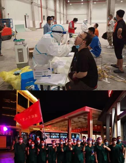 “支援空港時(shí)長(zhǎng)不定、檢測(cè)人數(shù)不定,直到完成任務(wù)。”7月26日下午一點(diǎn),一份緊急通知在南京一民醫(yī)院下達(dá)。面對(duì)未知,該院的醫(yī)護(hù)人員沒(méi)有遲疑,下午14點(diǎn)前便到醫(yī)院集合,20名隊(duì)員在全部完成核酸檢測(cè)院內(nèi)二次培訓(xùn)后,隨即奔赴江寧空港開(kāi)發(fā)區(qū)支援核酸檢測(cè)點(diǎn)。