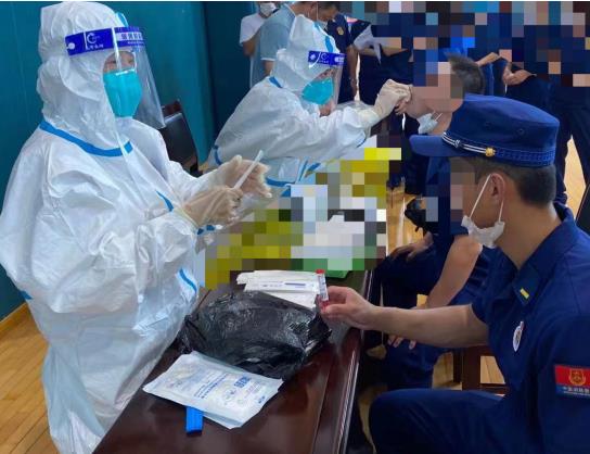 她兢兢業(yè)業(yè),堅(jiān)守崗位,從不計(jì)較個(gè)人得失。8月2日,醫(yī)院下發(fā)新任務(wù),要為120余名消防官兵進(jìn)行核酸采樣。喬科長(zhǎng)望著驕陽(yáng)似火的戶外,實(shí)在不忍心讓吳老師親自上陣,這種天出去一趟都要一身汗,更何況還要穿上密不透風(fēng)的防護(hù)服,她的身體能吃得消嗎?吳老師卻堅(jiān)持要去并笑著說(shuō),“多一個(gè)人多一份力,早點(diǎn)干完也能輕松點(diǎn)。”采集點(diǎn)雖在室內(nèi)但沒(méi)有空調(diào)和風(fēng)扇,再穿上厚悶的防護(hù)服,整個(gè)人仿佛身在蒸籠里,而兩人沒(méi)有一個(gè)在中途休息,也沒(méi)有一個(gè)喊苦喊累。脫下防護(hù)服時(shí),全身汗?jié)竦膮枪鹌歼€不忘關(guān)心她人,“喬,你還好吧?”一句簡(jiǎn)單的問(wèn)候,讓喬雪萍瞬間淚目。