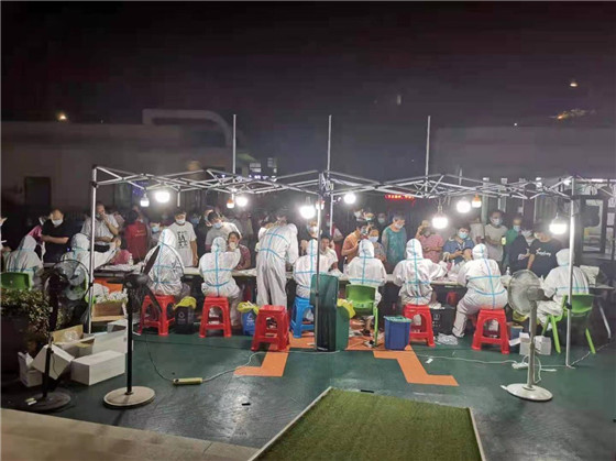 疫情就是命令,防控就是責(zé)任。7月20日面對(duì)來(lái)勢(shì)洶洶的疫情,江寧中醫(yī)院立即組建應(yīng)急核酸采樣隊(duì)支援祿口街道。已經(jīng)休假在家的黃初梅得知后,立即放棄年休假,主動(dòng)請(qǐng)纓,成為了醫(yī)院第一批應(yīng)急核酸采樣隊(duì)的一員。當(dāng)晚采樣隊(duì)到達(dá)祿口街道時(shí)已是深夜十一點(diǎn),但所有人都知道這場(chǎng)“戰(zhàn)爭(zhēng)”才剛剛開始,今夜注定無(wú)眠。黃初梅帶頭行動(dòng),不停囑咐群眾戴好口罩,保持1米距離,有序檢測(cè)。她仔細(xì)核對(duì)、規(guī)范采樣、裝管……就這樣忙忙碌碌地堅(jiān)持了30多個(gè)小時(shí),等到第二批隊(duì)友接替時(shí),她才覺(jué)察到右手已酸疼得抬不起來(lái),疲憊得連話都沒(méi)勁說(shuō)了……