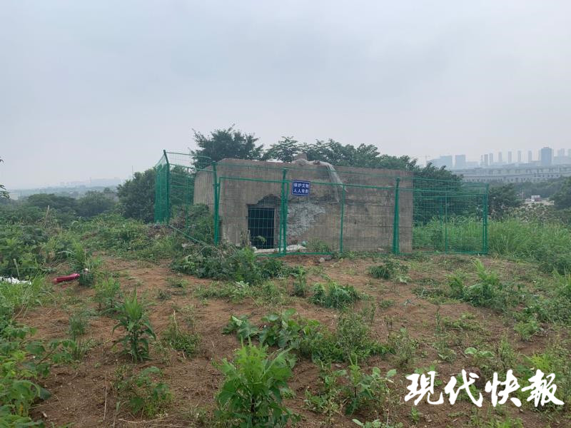 去年7月6日,現代快報記者就曾跟隨丁進探訪了位于方前村的碉堡。它是一座多角長方體構筑物,長5米、寬3.5米、高2.1米。朝著東南方向有一個射擊孔。丁進初步判斷,其種類為單口機關槍掩體。記者在現場看到,這處碉堡的射擊孔用玻璃遮擋,后方出入口上安了一個木門,它有可能被附近村民當儲藏室使用過。從外形看,保存較好。這座碉堡的特別之處,在于射擊孔上方不但密布彈痕,而且有一處深孔,疑似彈孔。10天后,記者從碉堡所在的橫嶺社區(qū)了解到,已對碉堡做了臨時性保護。