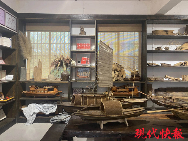徐海林曾經(jīng)的工作室不到20平方米,地方狹小、燈光昏暗,收來的大小船只無處可去,只好停放在附近河道、村路邊。后來,在當(dāng)?shù)卣拇罅χС窒拢辛诵碌墓ぷ魇?。同時通過利用廢舊廠房改造,蘇州·陽澄湖舟船文化館應(yīng)運而生,徐海林創(chuàng)作的各種船模也有了更大的展示空間。
