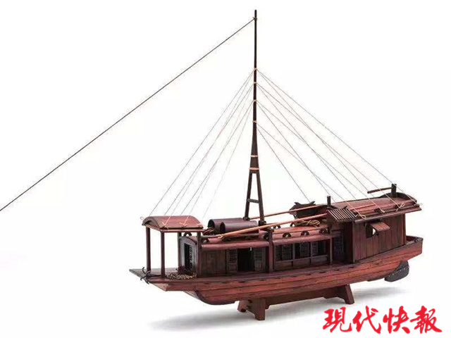 徐海林還清楚地記得他制作的第一艘船模“黃豆船”。“‘黃豆船’是村上裝運糧食的最普通的船。”徐海林介紹。雖說船見得多了,可把船做成模型的,大家還是頭一回見,“當(dāng)時村里人都跑到我家來看新鮮。”