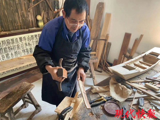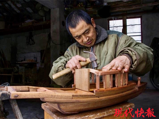 這組船模共有13艘,其中12艘為木船、1艘為竹筏,預(yù)計今年5月底可全部完工。“作為手藝人,我也想用自己的一技之長為黨獻禮。”徐海林接受現(xiàn)代快報記者采訪時說。