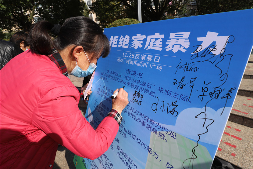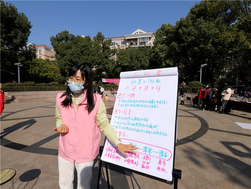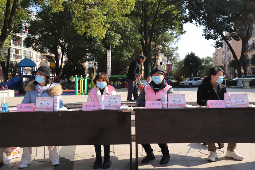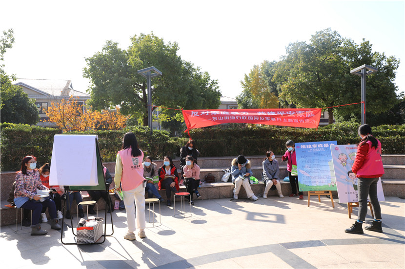 11月25日,南京市江寧區(qū)東山街道婦聯(lián)、街道司法所聯(lián)合中前社區(qū)婦聯(lián)、愛(ài)之旅舉辦反家暴宣傳活動(dòng)