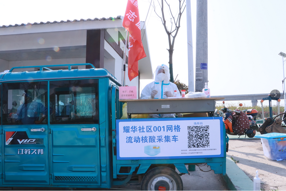 “流動(dòng)核酸檢測(cè)車來啦,隨停隨做,做完即走!”在南京市江寧區(qū)湖熟街道耀華社區(qū),一個(gè)又一個(gè)流動(dòng)核酸檢測(cè)車載著“大白”穿梭于社區(qū)的街頭巷尾。