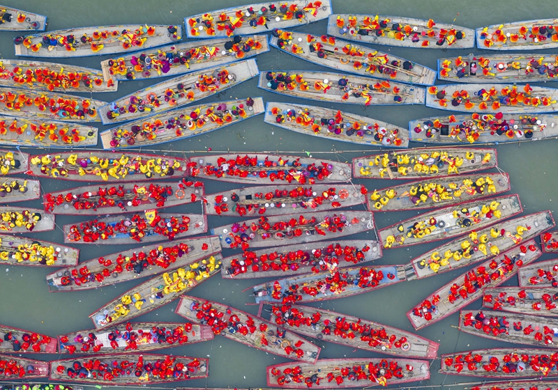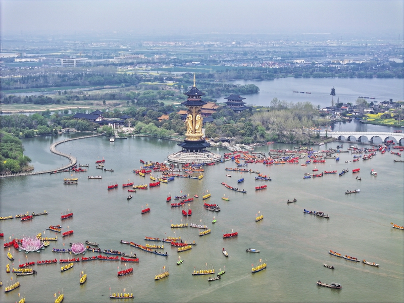 4月6日拍攝的溱潼會(huì)船現(xiàn)場(無人機(jī)照片)。新華社發(fā)(顧繼紅?攝)