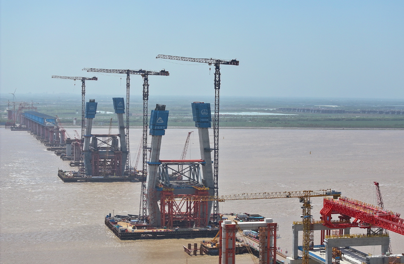 當(dāng)日,由中鐵大橋局承建的崇啟公鐵長江大橋4號主塔第17節(jié)澆筑完成,塔身高度突破100米,大橋進入上塔柱施工階段。崇啟公鐵長江大橋是滬渝蓉高速鐵路全線重點控制性工程,大橋全長4.09公里,橫跨長江北支,是江蘇啟東與上海崇明的主要連接通道。