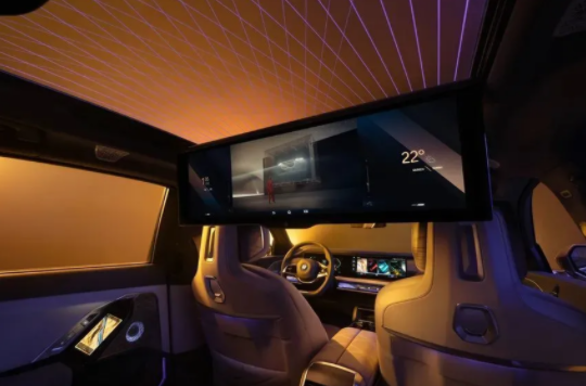 再比如打開車門最引人注目的是貫穿整個前排儀表板和車門的BMW環(huán)抱式交互光帶,與一體式懸浮曲面屏一起,帶來無與倫比的視覺與觸覺感受;還有后排創(chuàng)新地配備了BMW懸浮式巨幕,樹立豪華細分市場車內(nèi)娛樂系統(tǒng)新標桿。