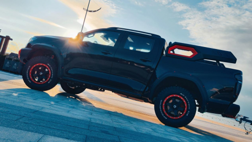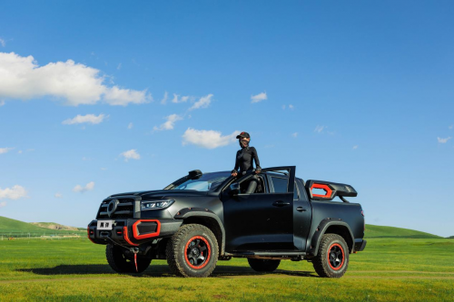 2022款黑彈是長城炮與運良攜手為深度越野和泛戶外玩家打造的“荒野利器”。潮流炫酷的外觀,獨具野性魅力。粗壯的熏黑中網(wǎng),搭配犀利的鷹眼大燈,讓車頭呈現(xiàn)出粗獷兇悍的視覺神態(tài);寬體輪眉的加入,讓升高后的整車比例更加勻稱協(xié)調(diào);全黑車身搭配亮橙點綴,為粗狂霸氣的外觀增加了一絲時尚感。它生動詮釋了什么叫做“低調(diào)不平庸,高調(diào)不張揚”,開著黑彈行在藍(lán)天白云下,簡直不要太拉風(fēng)!
