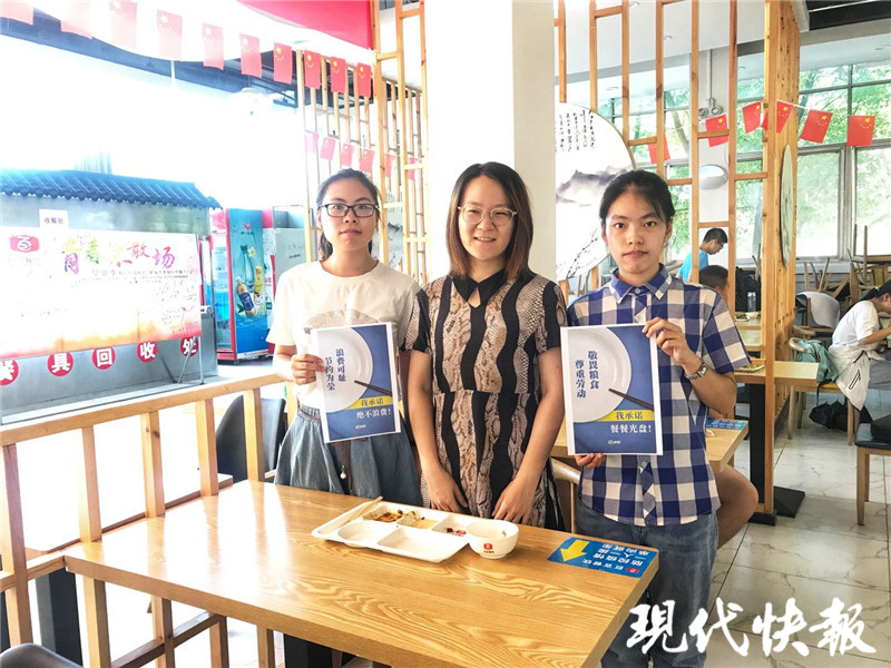 在學(xué)校食堂里,團(tuán)隊成員單俊、唐穎、康熙等,將自己打印制作的“光盤行動”海報張貼起來,宣傳節(jié)約“新食尚”,倡導(dǎo)光盤行動,杜絕“舌尖上的浪費”。