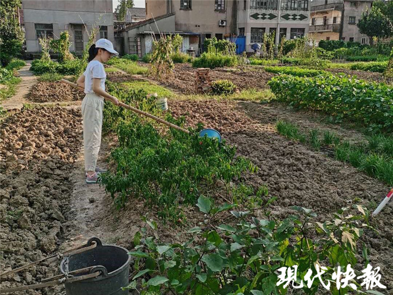 △江蘇大學(xué)學(xué)生為蔬菜澆水、施肥