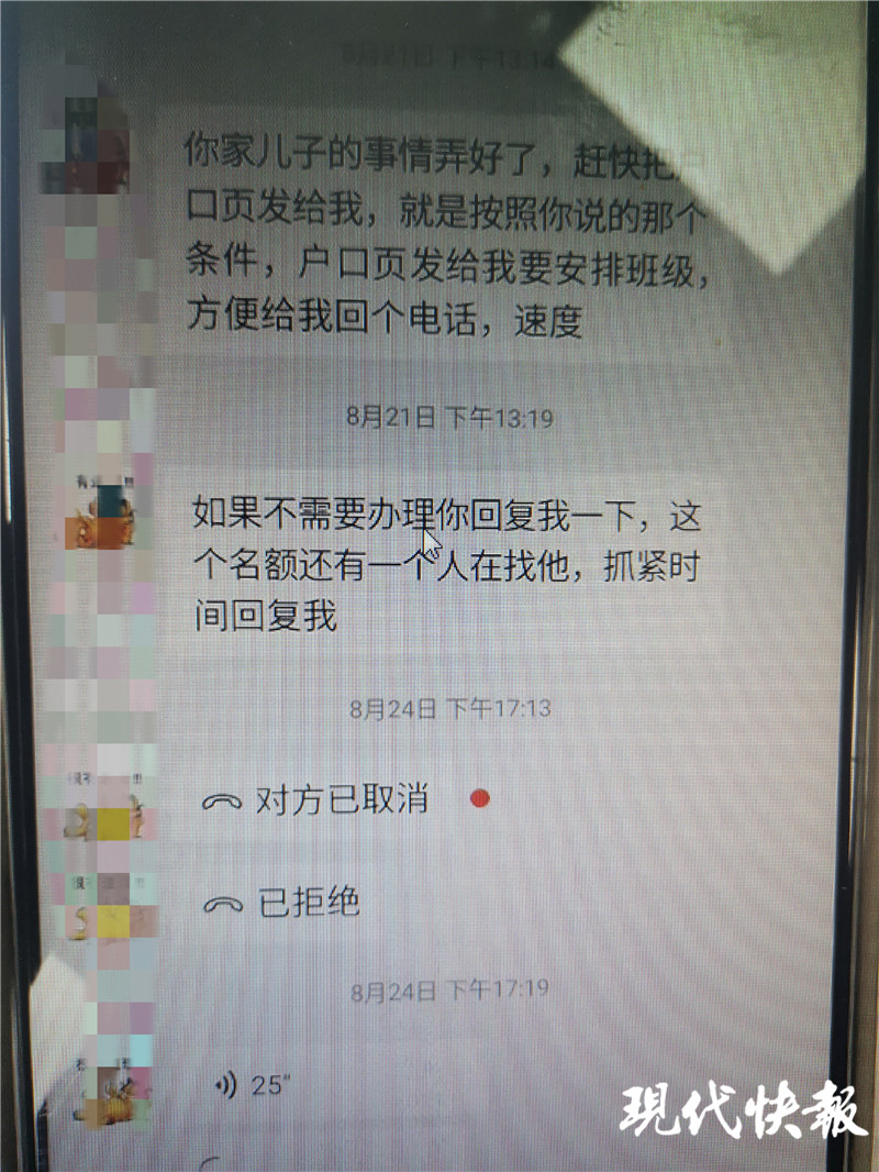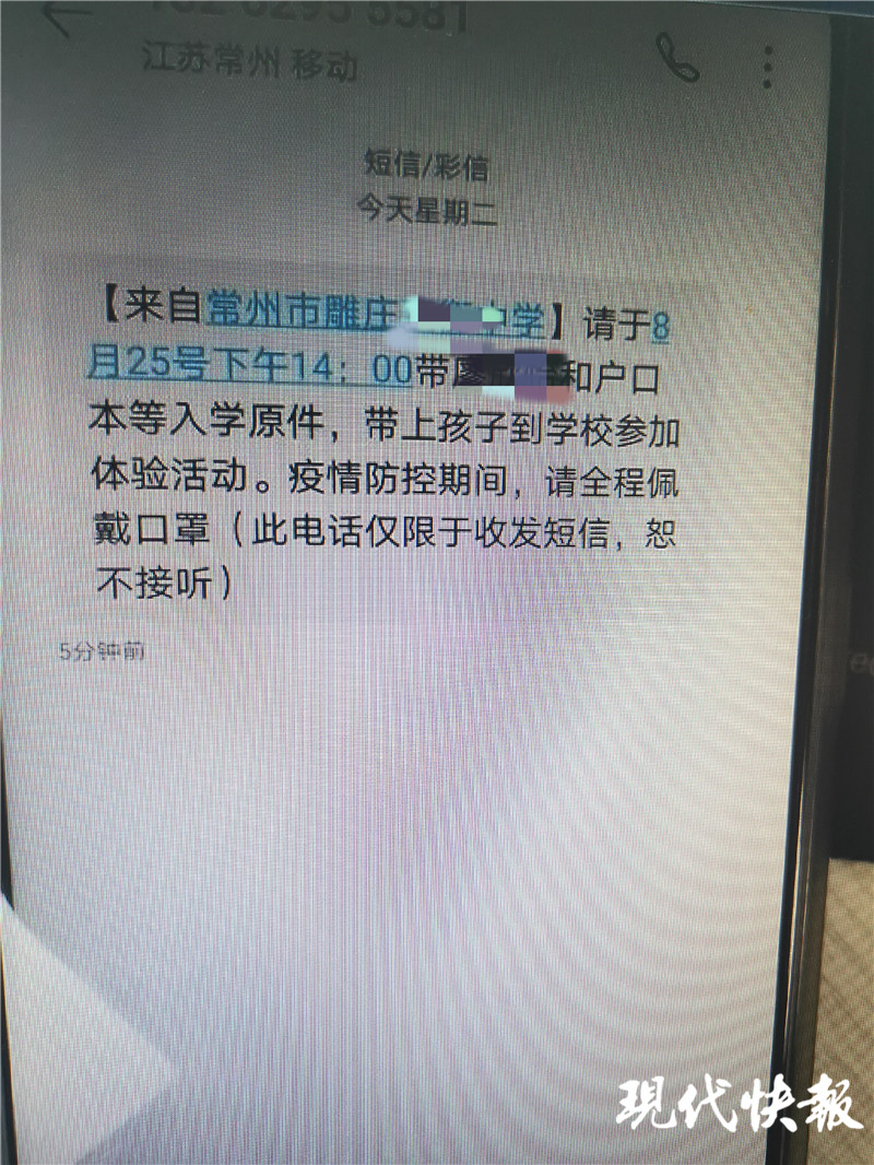 在廖先生看來,接下來的一段時間里,徐老板還真是很幫忙,一會問他要孩子的戶口信息,一會要孩子的小學(xué)畢業(yè)證書、成績單、居住證等信息。到了8月下旬,廖先生收到了一條短信,短信上顯示:(來自常州市雕莊某中學(xué))請于8月25號下午14:00帶廖**的戶口本等入學(xué)原件,帶上孩子到學(xué)校參加體驗活動。廖先生一看,短信格式很正規(guī),第一感覺就是學(xué)校發(fā)來的通知,他還覺得徐老板還真是給力,真把孩子上該知名初中的問題解決了,隨即將1.8萬元的打點(diǎn)費(fèi)轉(zhuǎn)給了徐老板。