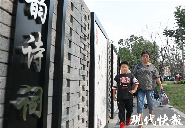 現(xiàn)代快報記者了解到,這處候?qū)W區(qū)原本是廢棄堆場,今秋新學(xué)期開學(xué)前剛建好,位于學(xué)校后門,面積大概3000平方米左右。這里綠草、花叢、樹木錯落,一道曲折的文化墻上,有古代文化名人的畫像和簡介,樹池新栽種了樹冠相對較大的樹種可以遮陰,一側(cè)還有充滿設(shè)計感的座椅。據(jù)悉,未來還會增設(shè)體育設(shè)施、多功能的合成墻等,讓候?qū)W區(qū)功能更多、更有趣味性。