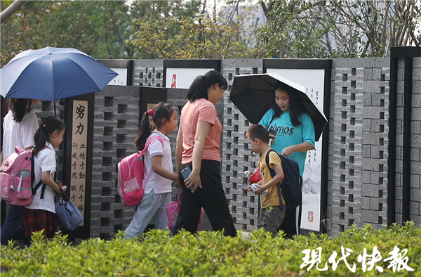 △ 南京市棲霞區(qū)實驗小學(xué)堯和路校區(qū)門口的公園式候?qū)W區(qū)