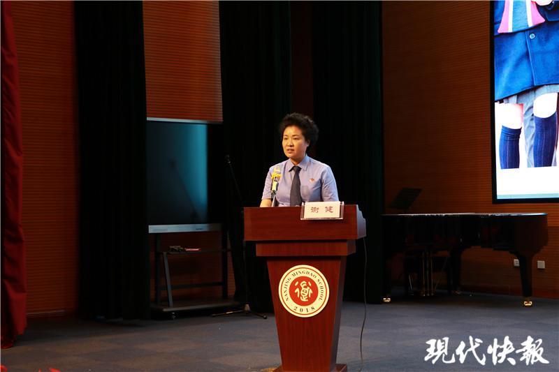 現(xiàn)場播放了南京檢察機(jī)關(guān)拍攝的微電影《同桌的你》后,謝健圍繞杜絕欺凌、理性上網(wǎng)、遠(yuǎn)離毒品等三個方面為同學(xué)們做提醒。“人生的扣子要從一開始就扣好,如果第一??圩涌坼e了,剩余的扣子都會扣錯。剛剛我們看的微電影,就很好地說明了這一點,幾個主人公的命運因為偏離了法律的軌道,而釀成了悲劇。” 謝健表示,她將與老師、家長、同學(xué)們一起探尋“教育之道、為師之道、家長之道、成長之道”。“在你們的成長過程中有法治相伴、守護(hù),也是我們一生的榮耀!”謝健說。