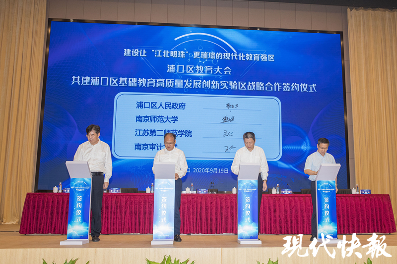 會上,市、區(qū)領(lǐng)導為市“陶行知獎”、市“斯霞獎”,區(qū)首屆“卓越獎”、“桃李獎”獲獎校長和教師頒獎。浦口區(qū)人民政府與南京師范大學、江蘇第二師范學院、南京審計大學等合作高校和江蘇省中小學教研室、南京市教科所等教科研部門簽署合作協(xié)議,教育資源合作代表進行交流發(fā)言。會議出臺了《浦口區(qū)關(guān)于深化教育體制機制改革的實施意見》和《浦口區(qū)全面深化新時代教師隊伍建設(shè)改革的實施意見》兩個文件。