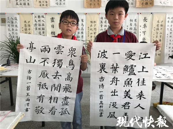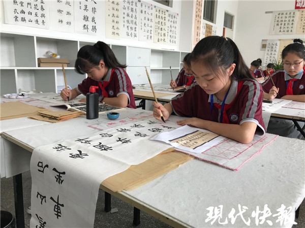 “書法教學是語文教學的重要組成部分。我校一直把書法社團作為特色社團來建設,每年從三年級學生中挑選出部分精兵強將,充分利用中午寫字課和晚上課后服務的時間,由專人教學輔導。”響水縣銀河路小學教務處主任嵇建軍說。