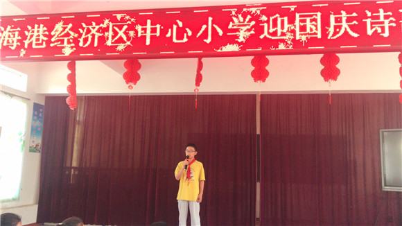金秋逢佳節(jié),丹桂迎盛世。為迎接偉大祖國母親71周歲華誕,進(jìn)一步激發(fā)學(xué)生的愛國熱情,2020年9月28日下午,鹽城濱海港經(jīng)濟(jì)區(qū)中心小學(xué)舉辦了“迎國慶,慶中秋”歌詠暨詩歌朗誦比賽活動(dòng)。我校學(xué)生積極參與活動(dòng),用激昂的誦讀與滿腔的熱情,一起慶祝偉大祖國的生日。