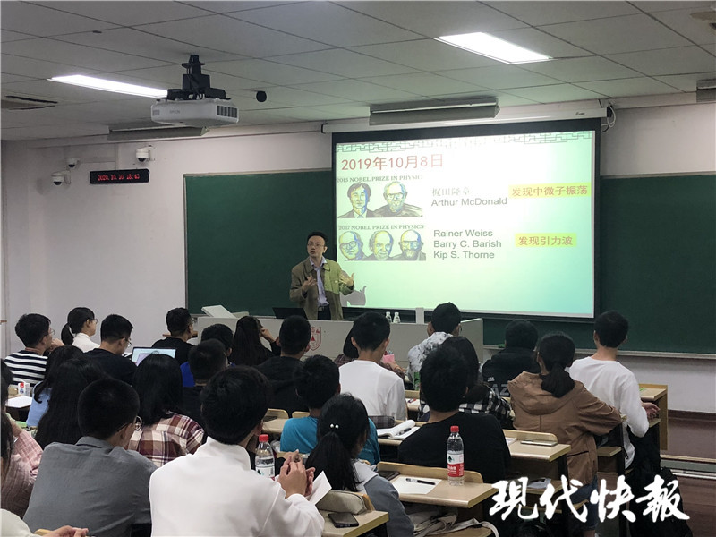 “今年諾貝爾物理學(xué)獎(jiǎng)公布,又是研究天文物理的科學(xué)家獲獎(jiǎng),為什么諾獎(jiǎng)對(duì)天文情有獨(dú)鐘?這反映了學(xué)科發(fā)展的一個(gè)趨勢(shì),人們視野越來(lái)越開(kāi)闊,胸懷宇宙,可能也同時(shí)回答了《小歡喜》中‘你為什么非要上那個(gè)南大’的疑問(wèn),因?yàn)槟洗筇煳氖侨珖?guó)第一啊!”幽默的語(yǔ)言加上深入淺出的天文知識(shí),一堂課笑聲、掌聲不斷,南京大學(xué)天文與空間科學(xué)學(xué)院教授陳鵬飛因此“圈粉”無(wú)數(shù)。
