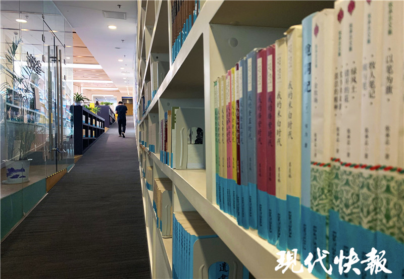 除了成人借閱室、自修室、報刊閱覽室等,還有三層的建鄴書房,裝修古色古香,是文創(chuàng)展示、全民閱讀活動空間,開展各類藝術(shù)沙龍、展覽展示等活動。