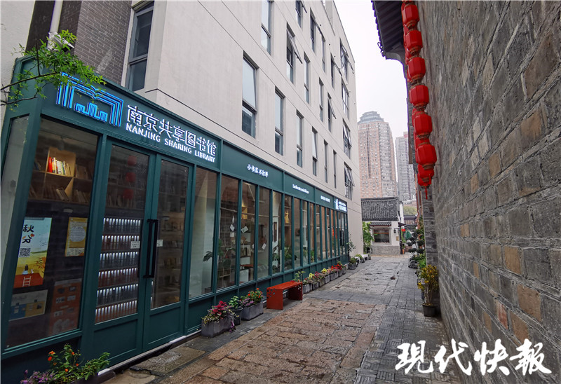 綠色復古的外墻、清新簡約的裝飾,對面就是熙南里有名的網(wǎng)紅青磚墻——這處“南京共享圖書館”,和老城南網(wǎng)紅街區(qū)動靜相宜。