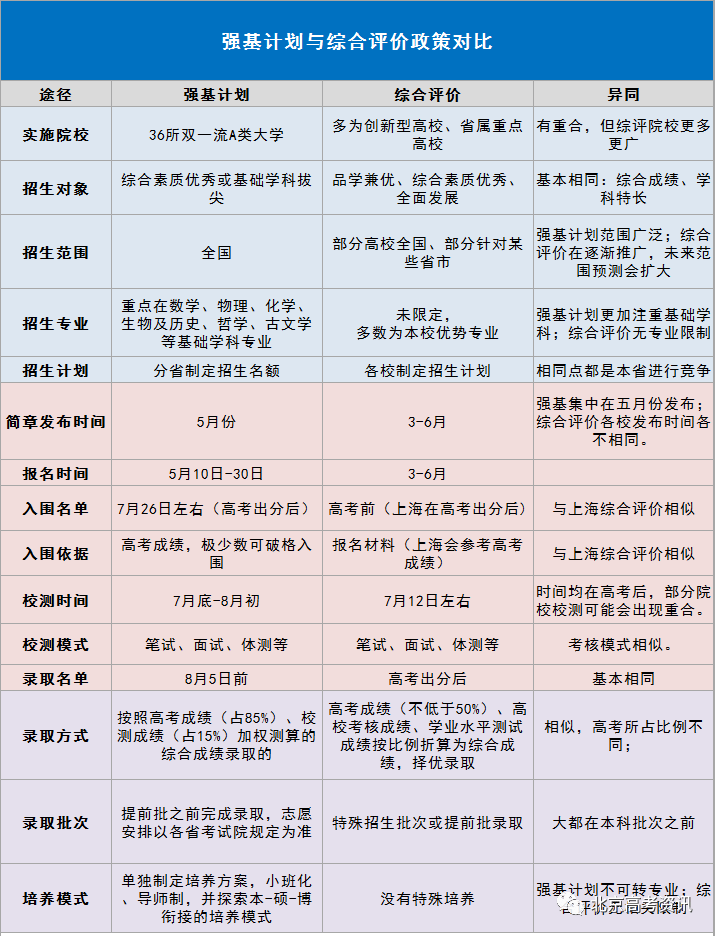 強(qiáng)基計(jì)劃與綜合評(píng)價(jià)兩種招生方式有什么