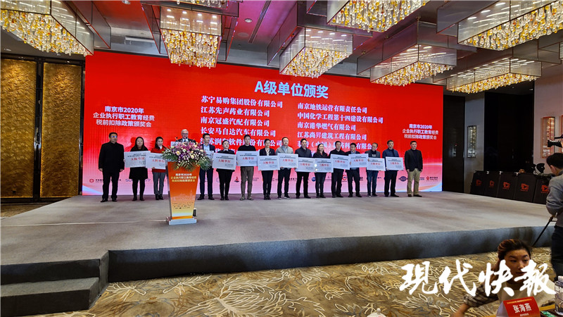 南京企業(yè)看過來,在開展職工技術(shù)技能培訓(xùn)及培訓(xùn)能力建設(shè)等方面成效顯著,最高可獲100萬元獎勵!12月22日下午,南京市人力資源和社會保障局、南京市財政局、國家稅務(wù)總局南京市稅務(wù)局聯(lián)合舉辦了2020年企業(yè)執(zhí)行職工教育經(jīng)費(fèi)稅前扣除政策頒獎會?,F(xiàn)代快報記者了解到,南京鋼鐵股份有限公司、南京中興軟件有限責(zé)任公司、蘇寧易購集團(tuán)股份有限公司等22家企業(yè)共計獲得970萬元獎勵。