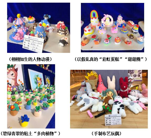 展臺上一個(gè)個(gè)獨(dú)具匠心的手工作品,融入了中華民族傳統(tǒng)的手工藝與現(xiàn)代手工制作。粘土,剪紙,衍紙畫,紙漿貼畫,布藝,編織,刺繡等手工作品,賺足了大家的眼球。學(xué)生代表還給前來參觀的師生分享自己做手工的經(jīng)驗(yàn)、想法以及制作過程等等,讓每一位喜愛手工的人都受益匪淺。