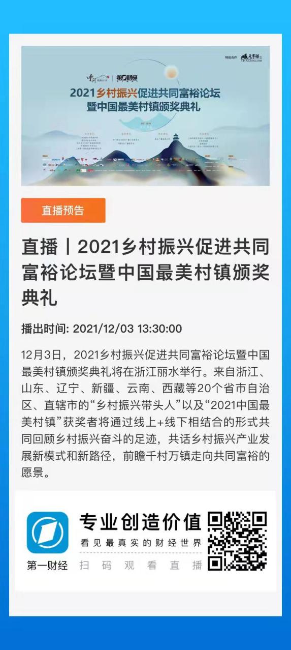 創(chuàng)建最美村鎮(zhèn)典范,擘畫共同富裕愿景。12月3日13時(shí)至17時(shí),期待您的參與和關(guān)注。