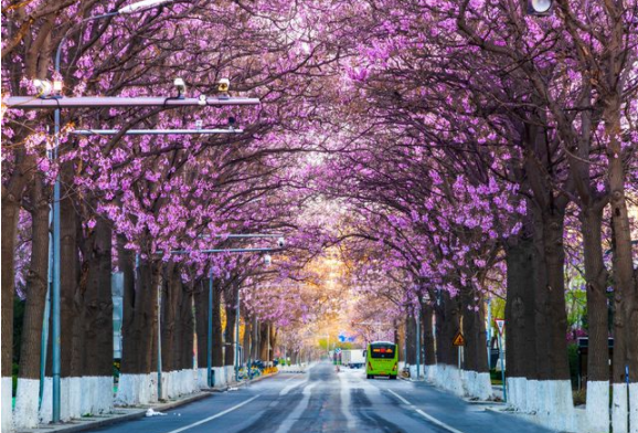 春暖花開時,北京有一條街道開滿了泡桐花,柔柔的清香正悄然變得濃郁,值得我們?nèi)ゼ毤毱肺叮l(fā)現(xiàn)生活的樂趣和身邊的美。京城賞花的季節(jié)里,最喜歡的就是四月里那紫色的泡桐花,這樣的風(fēng)景,不只存在于童話里,就在大興這條街道,也能如此治愈。從四月中旬開始,北京大街小巷就開滿了紫色的泡桐花,在大興亦莊有一條路兩邊的泡桐非常密集,形成了超美的紫色的泡桐花隧道,目前正值最佳觀賞期。