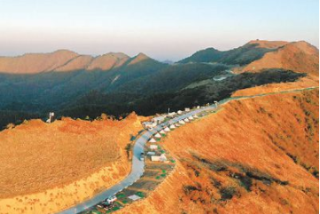 朝霞中的陜西省平利縣正陽草甸巴山一號(hào)露營地。新華社記者 陶 明攝