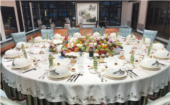 中國-中亞峰會《盛世榴芳》歡迎晚宴現(xiàn)場擺臺實(shí)景