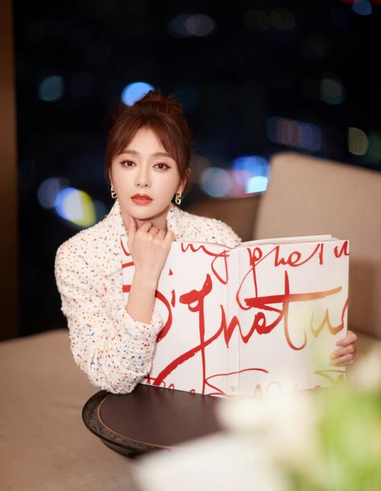 12月17日,眼鏡代言人秦嵐身著Valentino華倫天奴2022早春系列白色粗花呢套裝搭配閃亮刺繡Roman Stud手袋亮相VALENTINO華倫天奴南京德基廣場(chǎng)活動(dòng)。