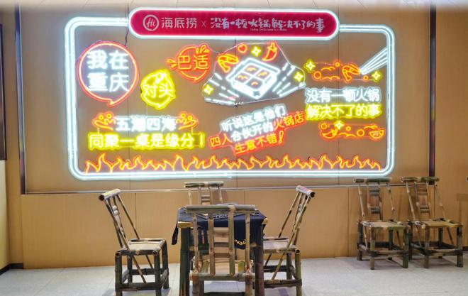 據(jù)了解,在電影《沒(méi)有一頓火鍋解決不了的事》中,劇情主要以重慶川味火鍋為場(chǎng)景展開,結(jié)尾提到主演四人開了一家火鍋店。海底撈借勢(shì)在重慶打造聯(lián)名主題店,霓虹燈墻、麻將桌等道具深度還原電影中的九餅戲園場(chǎng)景,成為絕佳的拍照打卡地。