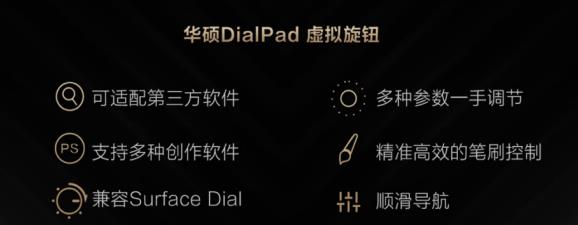 華碩獨有的DialPad虛擬旋鈕進一步優(yōu)化迭代,為用戶提供了更加智能的創(chuàng)作體驗。DialPad虛擬旋鈕擁有70多種功能,多種參數(shù)一手控制,多種筆刷指尖調(diào)節(jié),圖層、時間軸等功能精準控制,讓創(chuàng)作工作流程將會變得更加順暢。華碩DialPad虛擬旋鈕目前可兼容多款創(chuàng)作辦公軟件,也兼容Surface Dial等輔助設(shè)備。