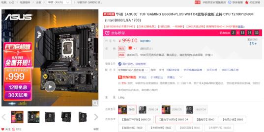 此外,若沒有無線需求,可選擇不帶WiFi 6無線網(wǎng)卡的華碩B660重炮手D4主板,價格更親民,京東限時秒殺價僅需999元,還可享12期免息福利。購買鏈接:https://item.jd.com/100031223666.html