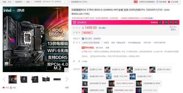 ROG STRIX B660-G GAMING WIFI主板——超頻神器 秒殺價1499元