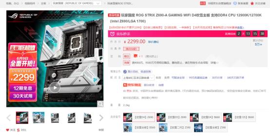 華碩Z690吹雪D4主板——Z690芯片組主板銷冠 秒殺價2299元